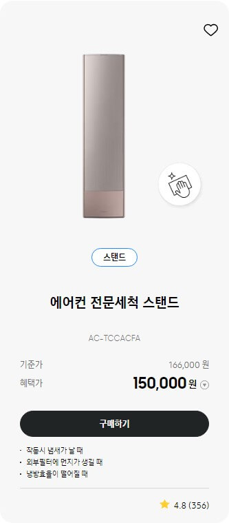 - 삼성케어플러스를 통해 전문세척이 필요한 경우