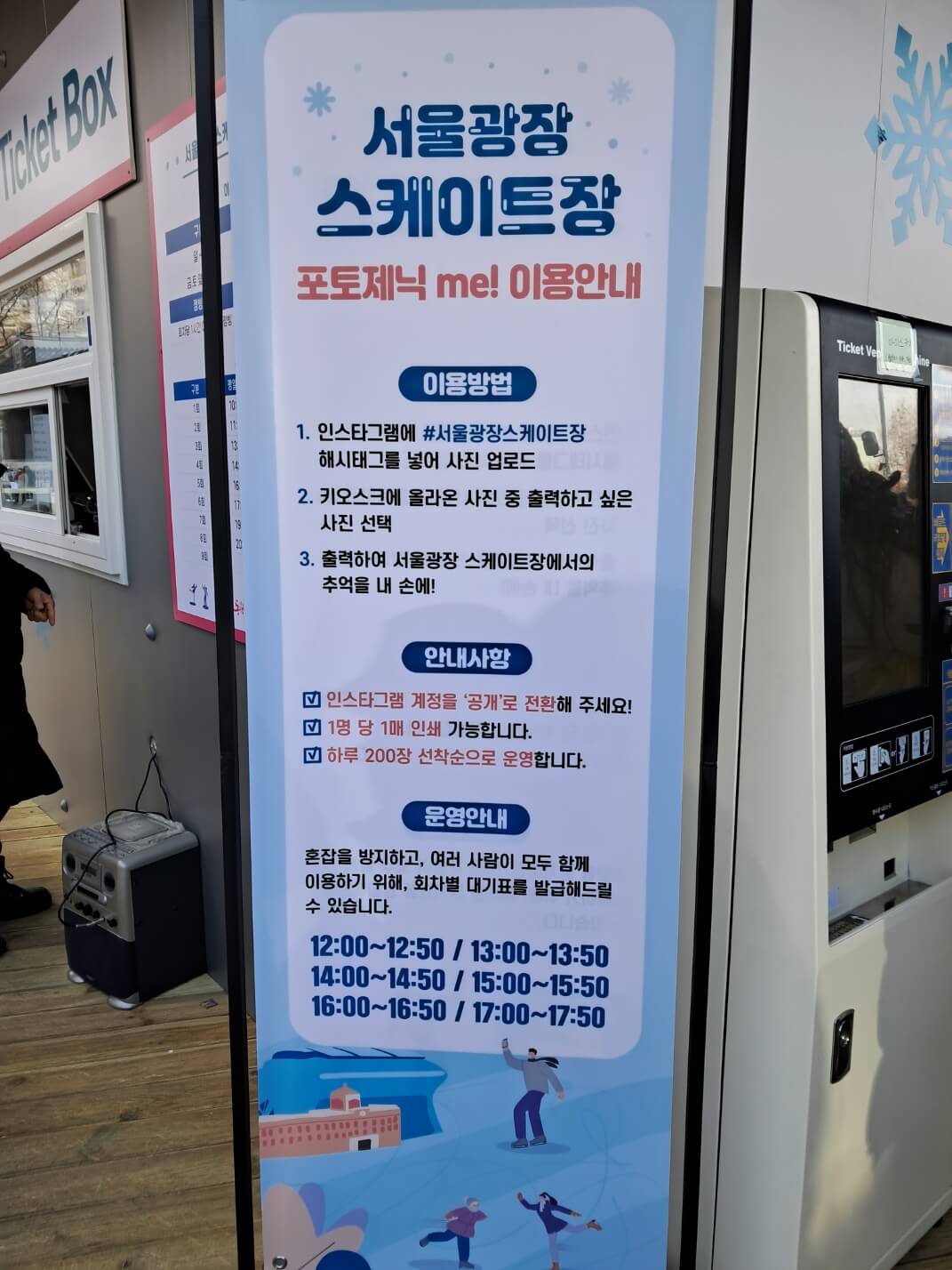 - 이용요금 : 1,000원 (1회 1시간, 스케이트 대여료 포함)