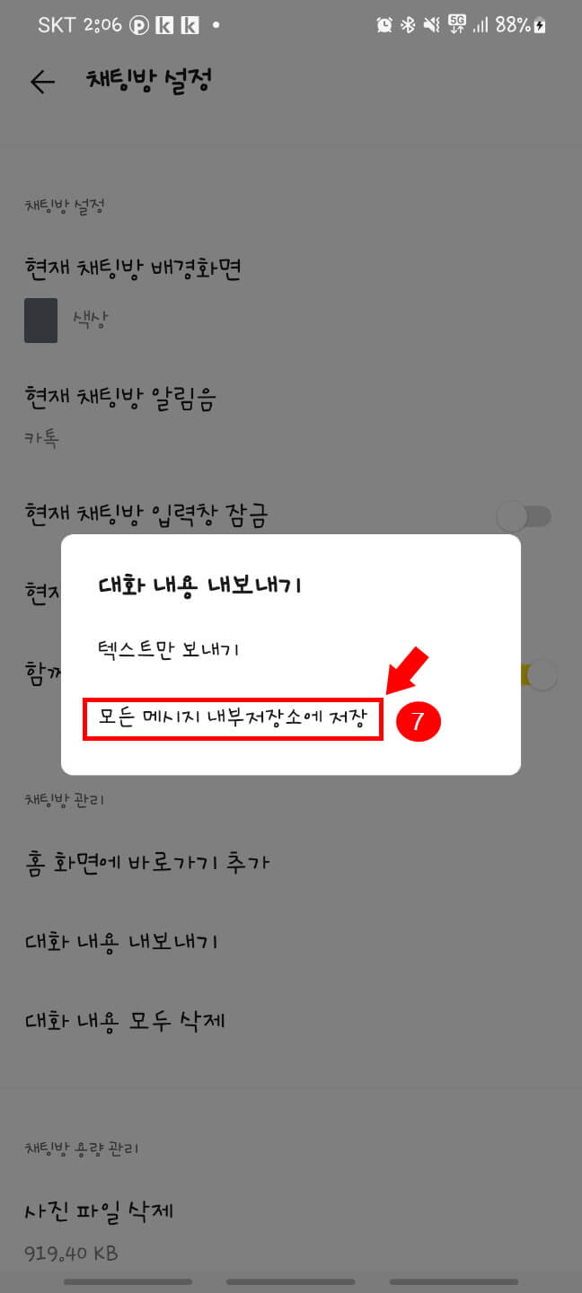 ▶ ⑦ 선택 2. 「모든 메시지 내부저장소에 저장」을 눌러줍니다.