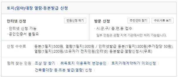 토지(임야)대장 인터넷 무료 발급(열람) 방법